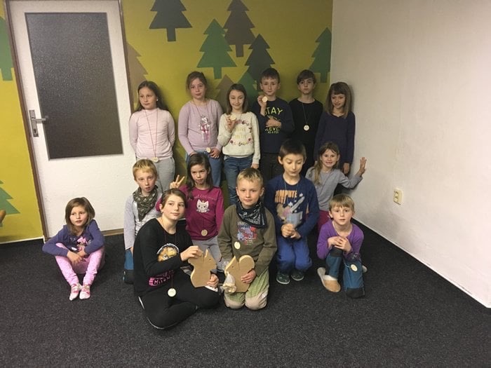 Veverky v únoru poznaly Matouše a Vojtu, VEVE z Nasavrk, kteří se přijeli podívat na poslední únorovou schůzku. Byli zapojení do her a soutěží a doufáme, že se s námi dobře pobavili. Opět jsme trénovali morse abecedu, vázali uzle, dali si "opáčko" testíku o VEVE apod. Nechyběly ani soutěže a hry, i když je často velmi těžké, aby se všechny děti vystřídaly během jedné schůzky..